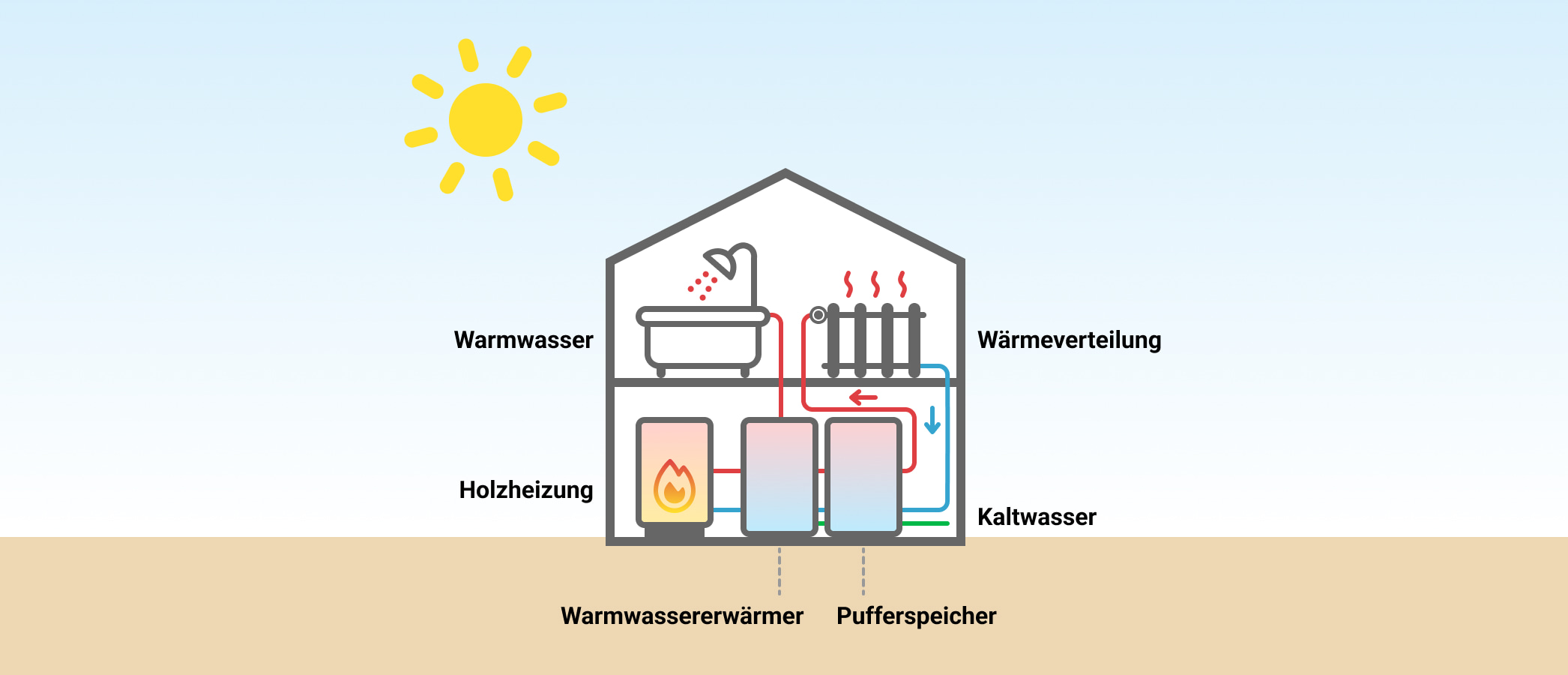 Holzheizungen können dort eingesetzt werden, wo in Zukunft weder Fernwärmeanschlüsse noch Wärmepumpenlösungen realisierbar sind. Dies können Stückholz-/Pellet-Feuerungen mit Tagesbehälter oder automatische Holzfeuerungen sein. Aufgrund der regional begrenzten Verfügbarkeit der Ressource Holz und den Umweltauswirkungen von Rauchgasen in Wohngebieten, haben Holzfeuerungen für Raumwärme jedoch nicht erste Priorität. Zudem wird Holz in Zukunft teilweise Prozesswärme in der Industrie ersetzen müssen, welche momentan noch mit Erdgas erzeugt wird.